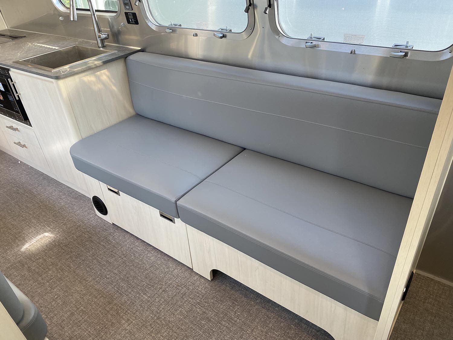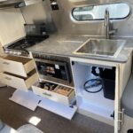Seamless Composite Flooring • Semi-Monocoque Aluminum Superstructure • Fluorocarbon Treated UV Protected Aluminum Exterior • Temperature Reducing One Piece White Aluminum Roof • Thermal Barrier Protection Between Interior and Exterior • Handcrafted Welded Extruded Aluminum Window Frames • Tempered Tinted Windows with Double Cam Latching System • Manual ZipDee® Patio Awning with Sunbrella® Fabric • ZipDee® Rear & Roadside Window Awning w/Sunbrella® Fabric (Optional) • Polished Bumper with Storage • LP (2 – 30 lb. Steel Tanks) with auto 2-stage regulator • Aluminum Removable LP Cover • Multi-Stage Converter • Exterior LP Gas Low Pressure Grill Connection • Solar Front Window Protection • Stainless Steel Front Stone Guard Protection • Exterior Shower with Hot & Cold Water • Lockable Fresh Water Tank Inlet • City Water Inlet with Water Pressure Regulator • Black Tank Flush System • Hand Painted Chassis • Torsion Axle Suspension • Shock Absorber • Powered Hitch Jack with Light • 4 Manual Heavy Duty Stabilizer Jacks • Goodyear® Endurance ST225/75R15 Tires, Balanced • Stylized Aluminum Wheels • Nev-R-Lube® Sealed Bearings • Nev-R-Adjust® Brakes • Spare Tire – Full Size • Solar Pre-wire (Rooftop & Front Access Points) • Rear View Monitoring System • Cable TV Hookup • Satellite TV Hookup • Dedicated Waste Hose Storage • Custom Aluminum Handcrafted 26″ Wide Entry Door w/Window • Aluminum Entry Door Handle • Unique Front Door Key with Heavy Duty Deadbolt • Cast Aluminum Door Hinges • Airstream Custom Aluminum Entry Step • Aluminum Rear Hatch with Screen option (25FB and 27FB only) • LED Entrance Light • LED Tank Service Light • LED Storage Compartment Light • Cast Aluminum LED Tail Lights • License Plate Bracket with LED Light • Enclosed Aluminum Insulated Heated Underbelly