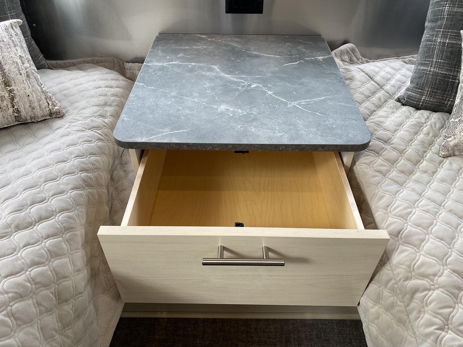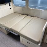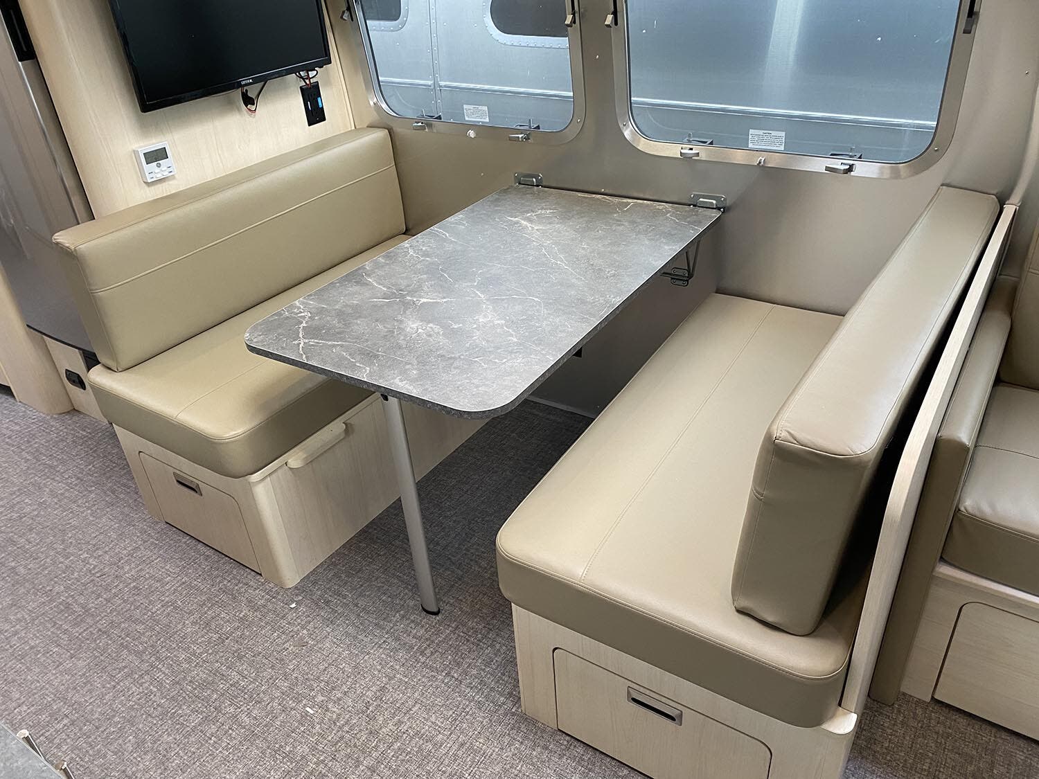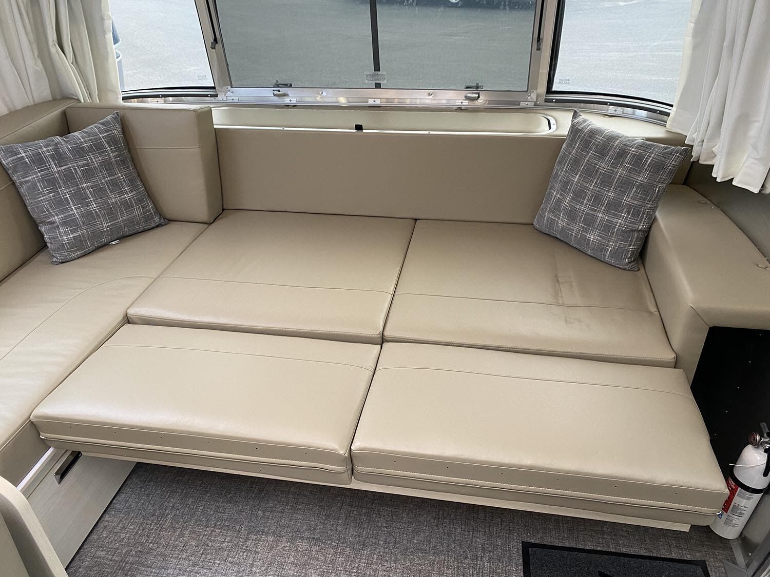 Seamless Composite Flooring • Semi-Monocoque Aluminum Superstructure • Fluorocarbon Treated UV Protected Aluminum Exterior • Temperature Reducing One Piece White Aluminum Roof • Thermal Barrier Protection Between Interior and Exterior • Handcrafted Welded Extruded Aluminum Window Frames • Tempered Tinted Windows with Double Cam Latching System • Manual ZipDee® Patio Awning with Sunbrella® Fabric • ZipDee® Rear & Roadside Window Awning w/Sunbrella® Fabric (Optional) • LED Dimmable Patio Awning Light • Polished Bumper with Storage • LP (2 – 30 lb. Steel Tanks) with auto 2-stage regulator • Aluminum Removable LP Cover • Multi-Stage Converter • Exterior LP Gas Low Pressure Grill Connection • Solar Front Window Protection • Stainless Steel Front Stone Guard Protection • Exterior Shower with Hot & Cold Water • Lockable Fresh Water Tank Inlet • City Water Inlet with Water Pressure Regulator • Black Tank Flush System • Hand Painted Chassis • Torsion Axle Suspension • Shock Absorber • Powered Hitch Jack with Light • 4 Manual Heavy Duty Stabilizer Jacks • Goodyear® Endurance ST225/75R15 Tires, Balanced • Stylized Aluminum Wheels • Nev-R-Lube® Sealed Bearings • Nev-R-Adjust® Brakes • Spare Tire – Full Size • Solar Pre-wire (Rooftop & Front Access Points) • Rear View Monitoring System • Cable TV Hookup • Satellite TV Hookup • Dedicated Waste Hose Storage • Custom Aluminum Handcrafted 26″ Wide Entry Door w/Window • Aluminum Entry Door Handle • Unique Front Door Key with Heavy Duty Deadbolt • Cast Aluminum Door Hinges • Airstream Custom Aluminum Entry Step • Aluminum Rear Hatch with Screen option (25FB and 27FB only) • LED Entrance Light • LED Tank Service Light • LED Storage Compartment Light • Cast Aluminum LED Tail Lights • License Plate Bracket with LED Light • Enclosed Aluminum Insulated Heated Underbelly