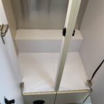 Removable Hand Held Shower Head with Shut Off • Porcelain Toilet • Lavy Sink • Roof Vent/Fan • Towel Bar/Ring • Retractable Clothes Line in Shower • Delta® Faucet