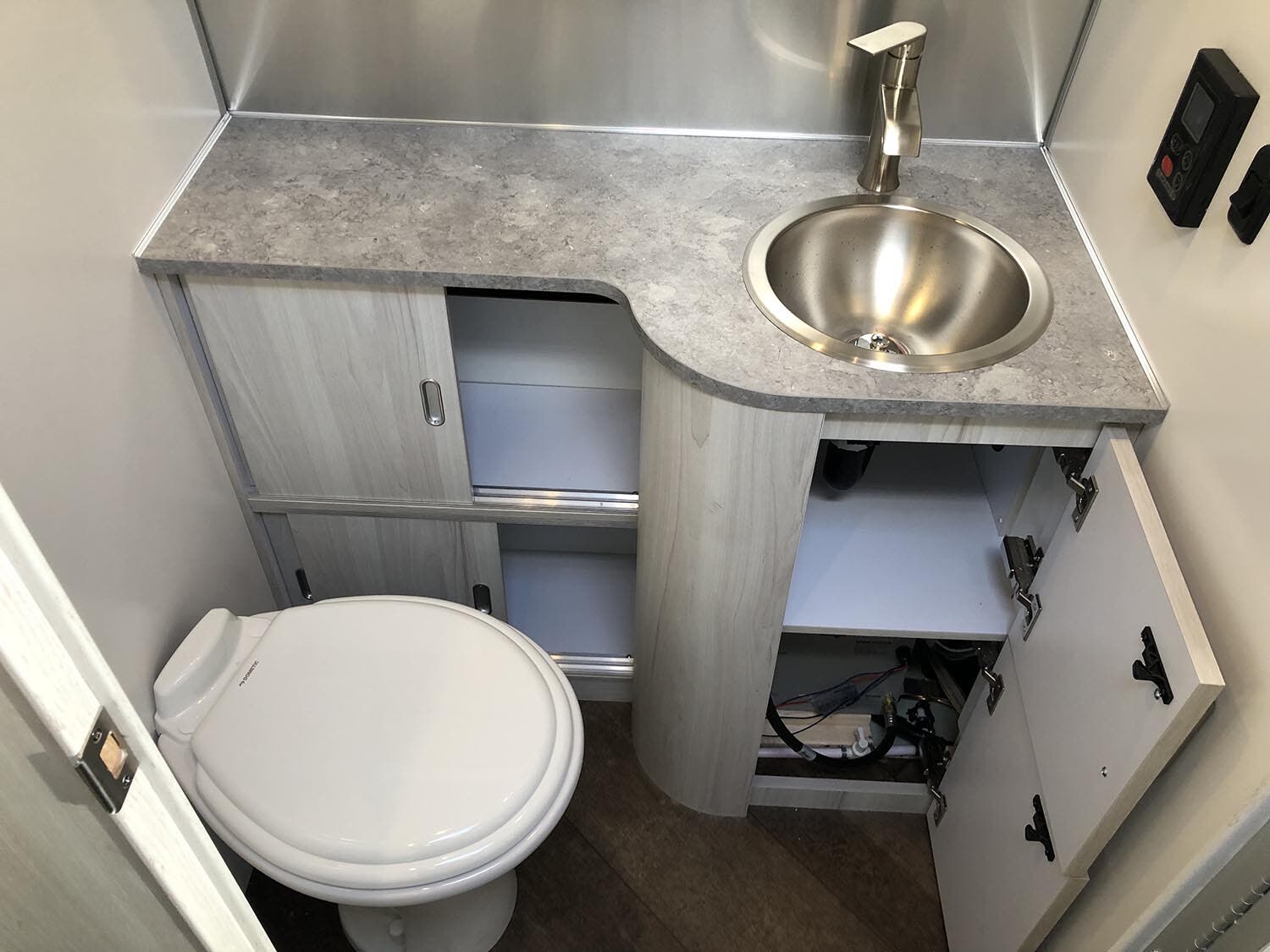 Removable Hand Held Shower Head with Shut Off • Porcelain Toilet • Lavy Sink • Roof Vent/Fan • Towel Bar/Ring • Retractable Clothes Line in Shower • Moen® Faucet