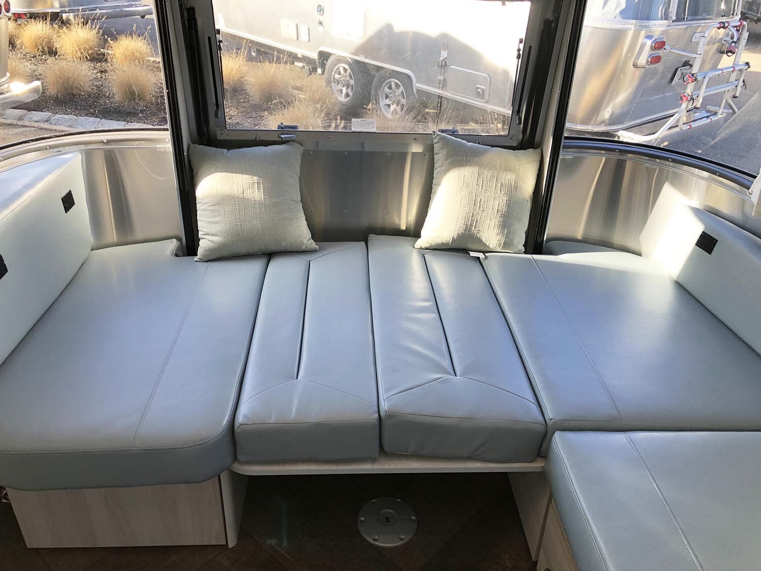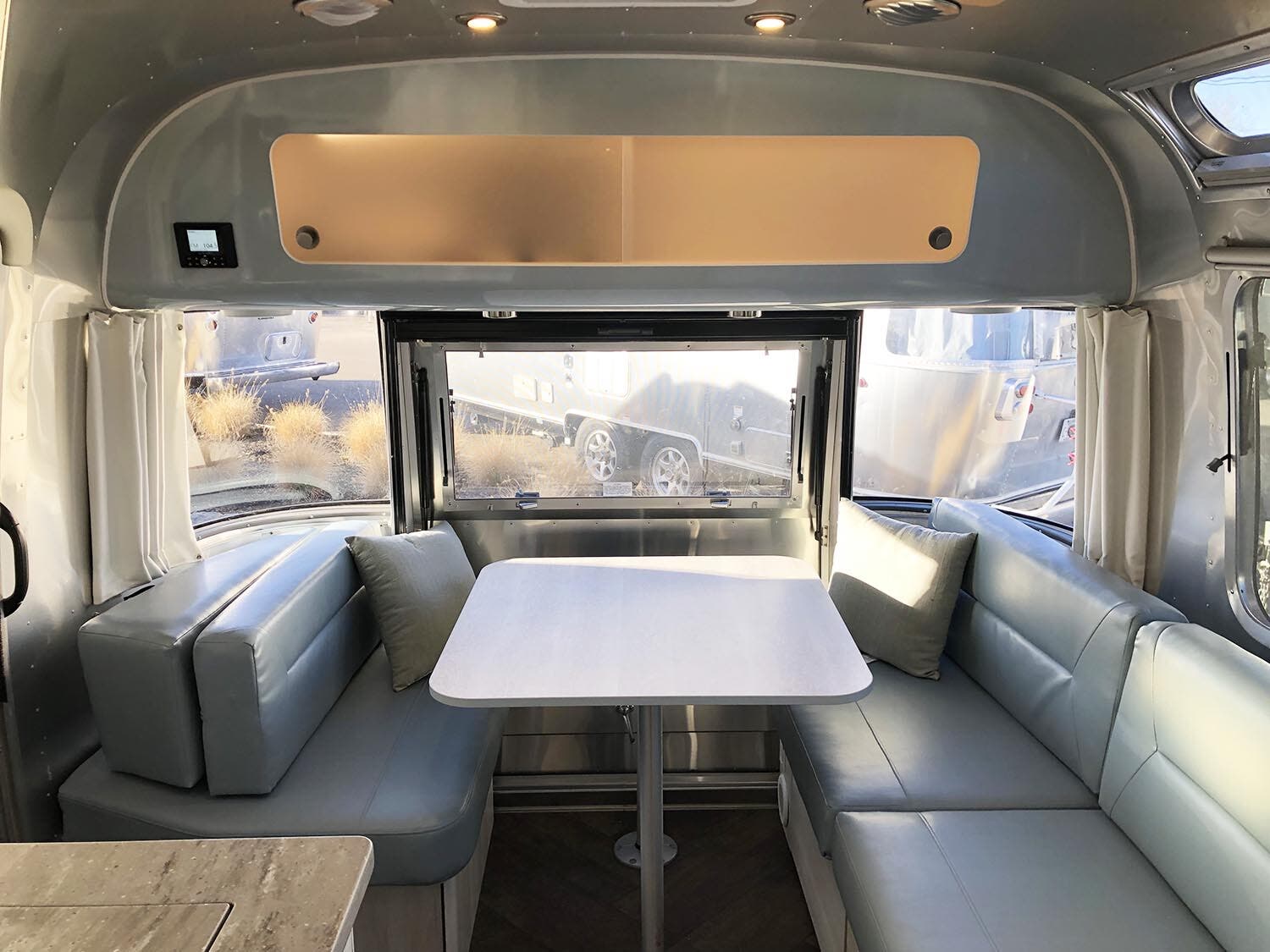 Complete Aluminum Interior Walls and Ceiling • Quietstream™ A/C with Heat Pump & Electronic Thermostat • Fantastic© Fan with Thermostat & Automatic Rain Sensor • Probeless Tank Monitoring System • EcoBatt™ Insulation • Handcrafted Aluminum Screen Door with Guards • Panoramic Front Windows with Blackout Shades • Handcrafted Italian Lite-Ply Laminated Cabinetry • Seamless Vinyl Flooring • LED Interior Lighting with Dimmer • Overhead Storage with Sliding Doors and LED Lighting • Tankless On Demand LP Water Heater • 2000W Pure Sine Inverter • Coat & Key Hooks • Airstream Connected Pre-wire