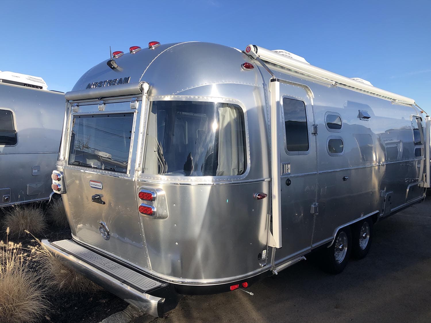 Semi-Monocoque Aluminum Superstructure • Fluorocarbon Treated UV Protected Aluminum Exterior • Temperature Reducing One-Piece White Aluminum Roof • Thermal Barrier Protection Between Interior and Exterior • Handcrafted Welded Extruded Aluminum Window Frames • Tempered Tinted Windows with Double Cam Latching System • Powered ZipDee® Patio Awning with Sunbrella® Fabric • ZipDee® Rear & Roadside Window Awning w/Sunbrella® Fabric • Polished Bumper with Storage • LP (2 – 30 lb. Steel Tanks) with auto 2-stage regulator • Aluminum Removable LP Cover • Multi-Stage Converter • Exterior LP Gas Low Pressure Grill Connection • Solar Front Window Protection • Stainless Steel Front Stone Guard Protection • Exterior Shower with Hot & Cold Water • Lockable Fresh Water Tank Inlet • City Water Inlet with Water Pressure Regulator • Black Tank Flush System • Hand Painted Chassis • Torsion Axle Suspension • Shock Absorber • Powered Hitch Jack with Light • 4 Manual Heavy Duty Stabilizer Jacks • Goodyear® Endurance ST225/75R15 Tires, Balanced • Stylized Aluminum Wheels • Nev-R-Lube® Sealed Bearings • Nev-R-Adjust® Brakes • Spare Tire – Full Size • Solar Pre-wire (Rooftop & Front Access Points) • Rear View Monitoring System • Cable TV Hookup • Satellite TV Hookup • Dedicated Waste Hose Storage • Custom Aluminum Handcrafted 26″ Wide Entry Door w/Window • Aluminum Entry Door Handle • Unique Front Door Key with Heavy Duty Deadbolt • Cast Aluminum Door Hinges • Airstream Custom Aluminum Entry Step • Aluminum Rear Hatch with Screen Option (25FB and 27FB only) • LED Entrance Light • LED Tank Service Light • LED Storage Compartment Light • Cast Aluminum LED Tail Lights • License Plate Bracket with LED Light • Enclosed Aluminum Insulated Heated Underbelly • Seamless Composite Flooring