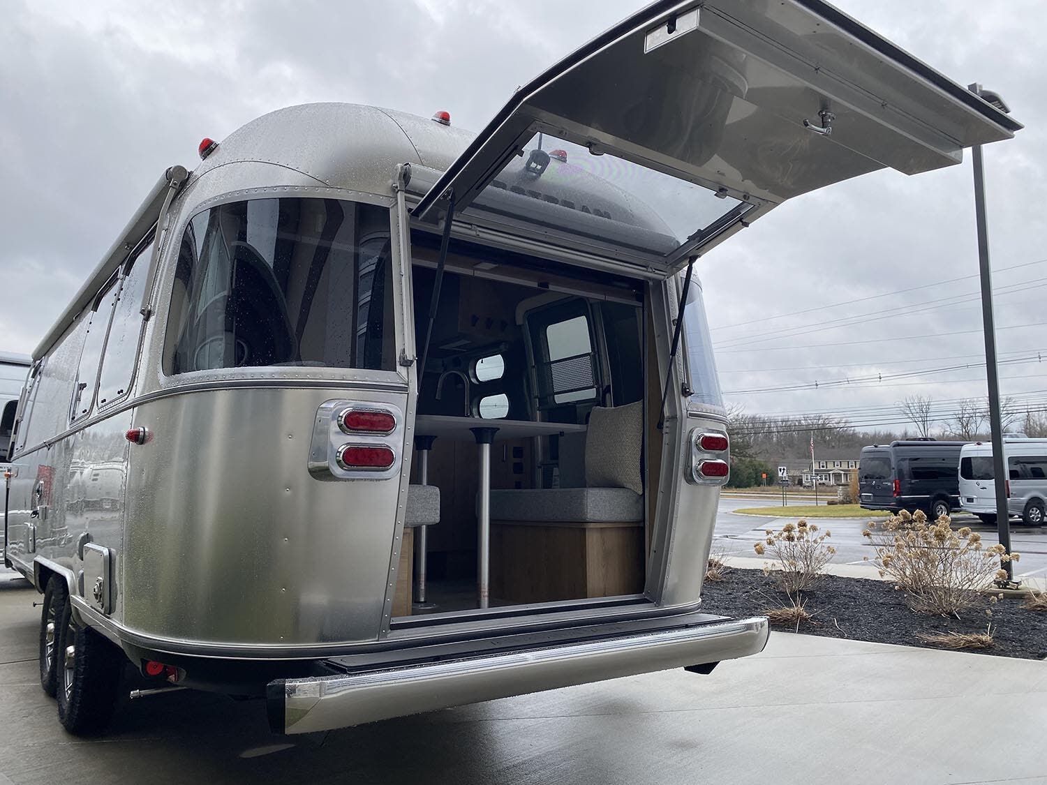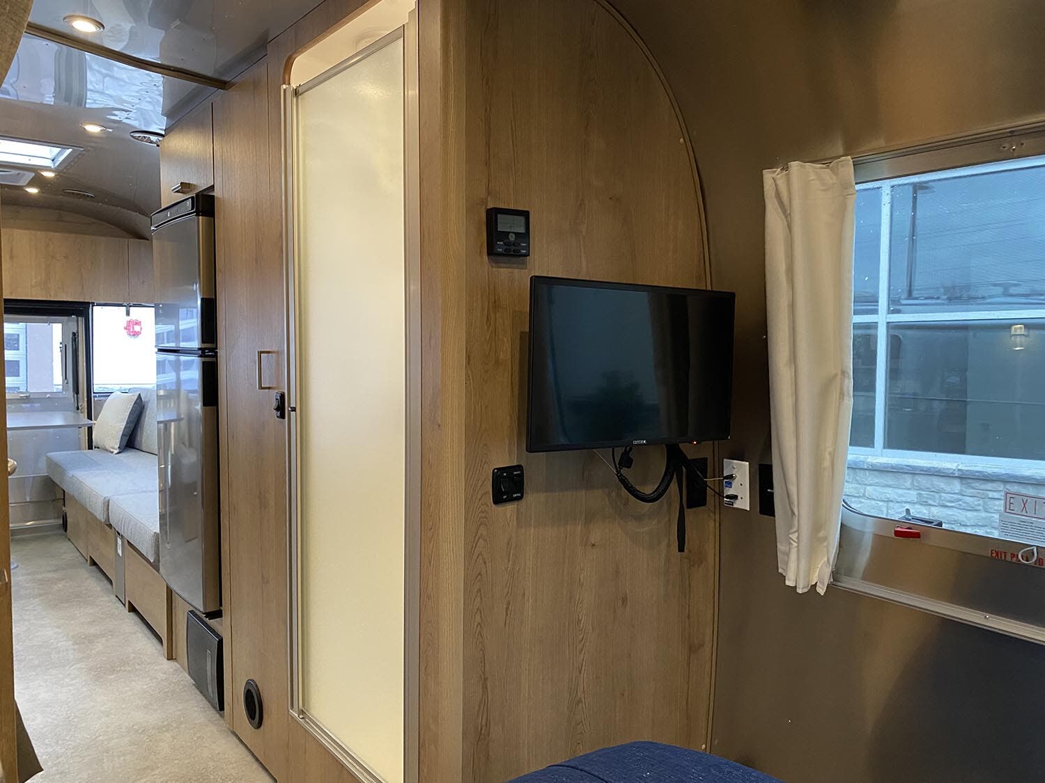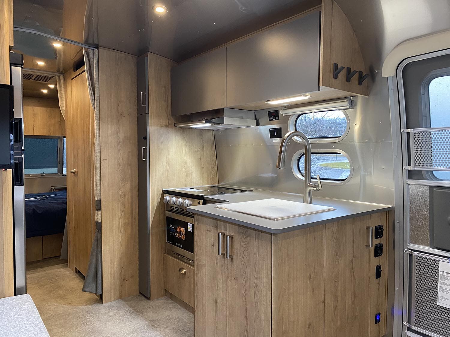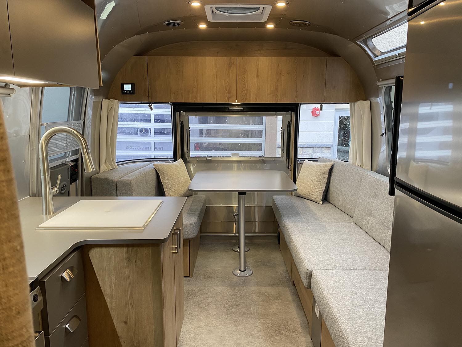 12v USB-A and USB-C Ports • 3000W 12V-110V Inverter • Airstream Connected Pre-wire • Bring Your Own Device HDMI Connectivity • Coat & Key Hooks • Complete Aluminum Interior Walls and Ceiling • Handcrafted Aluminum Screen Door with Guards • Handcrafted Italian Lite-Ply Laminated Cabinetry • Insulation • LED Interior Lighting with Dimmer • Lithium Batteries (3) 270Ah; Heated and Chassis Integrated • Multi-Speed Roof Exhaust Fan with Rain Sensor • Overhead Lockers with Concealed Lever Latch • Panoramic Front Windows with Blackout Shades • Probeless Tank Monitoring System • QuietStream™ A/C with Heat Pump & Electronic Thermostat • Seamless Vinyl Flooring • Skylight with Blackout Shade • Tankless On-Demand Recirculating LP Water Heater • Touch Screen Power Display (Charge, Solar and Inverter Metrics)