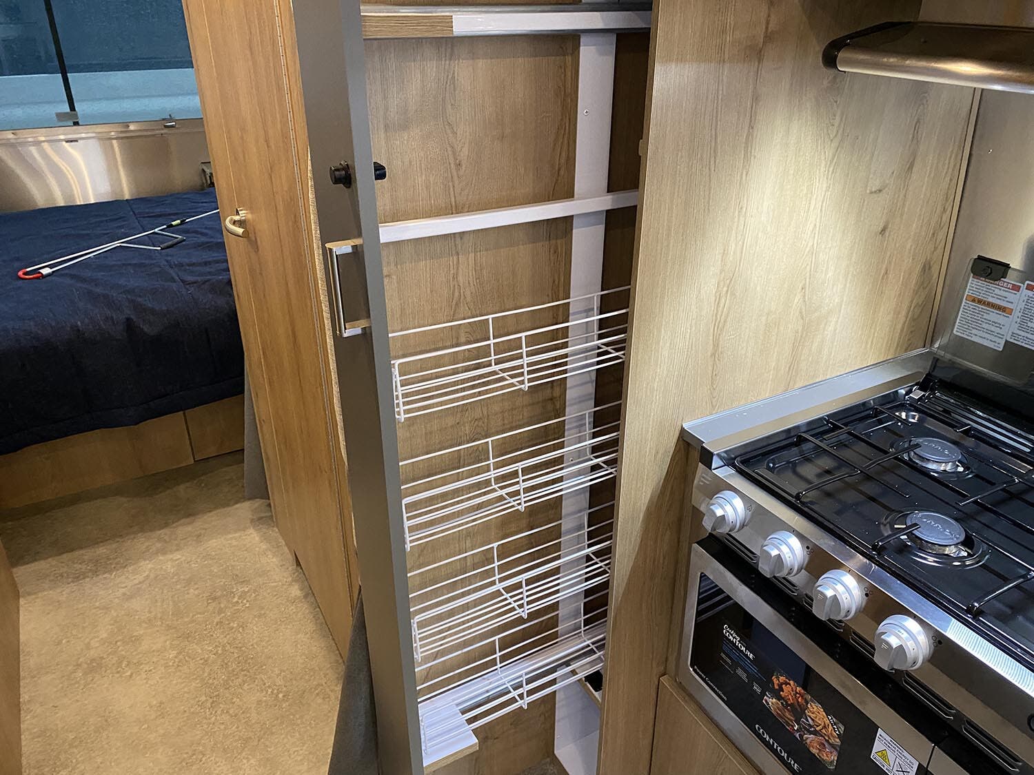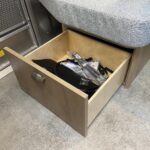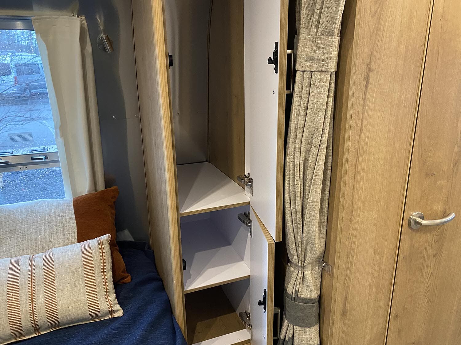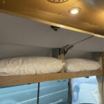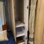 24” 12V DC Smart TV with Bluetooth® • Decorative Throw Pillows • Overhead Storage with Concealed Lever Latch • Panoramic Windows with Blackout Curtains • Queen Bed with Pillow Top Memory Foam Mattress • Quilted Bedspread • Reading LED Lights • Sleeping Pillows • Twin Beds with Pillow Top Memory Foam Mattress (OPT) • Under Bed Storage • Wardrobe with Hanging Bar