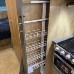 27” 12V DC Smart TV with Bluetooth® • 3 Burner Stove and Oven (LP Gas) • Baraldi Cooking Vent with Light • Convection Microwave Oven (Replaces Oven) (OPT) • Convertible Lounge and Sleeping Accommodations • Dedicated Table Storage • Dinette Converts to a Lounge and Sleeping Accommodations • Flatware Organizer • JL Audio® Stereo with Bluetooth® Connectivity and 4 Speakers • Laminate Dinette Top • Laminate Galley Top • Pull Out Pantry with Adjustable Shelving • Pull Out Spray Faucet • Roller Shades • Stainless Steel Sink with Cutting Board Sink Cover • Surround Sound and Subwoofer
