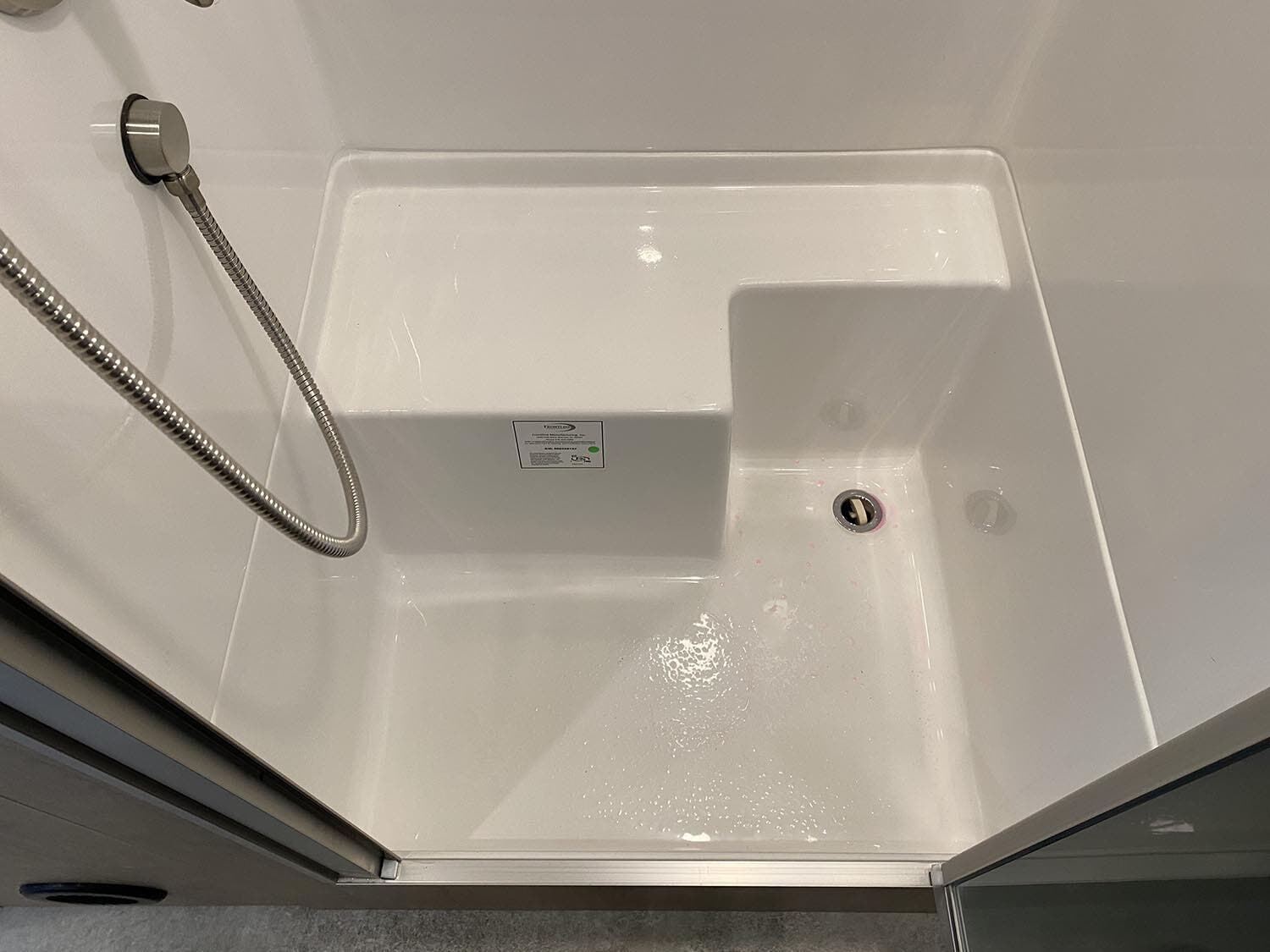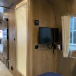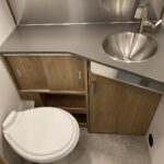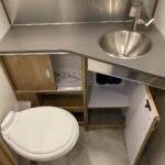 Bathroom Faucet • Composting Toilet (OPT) • Lavy Sink • Medicine Cabinet and Additional Storage • Porcelain Toilet • Reeded Glass Shower Door • Removable Hand Held Shower Head with Shut Off • Retractable Clothes Line in Shower • Roof Vent/Fan • Towel Bar/Ring