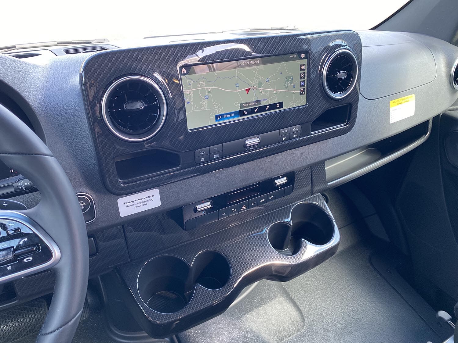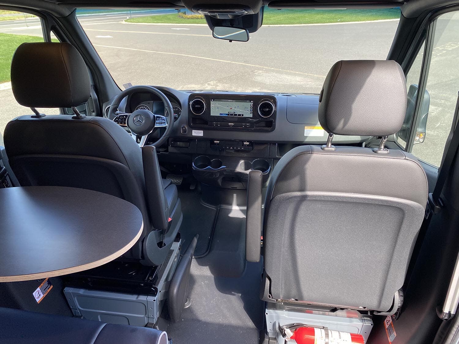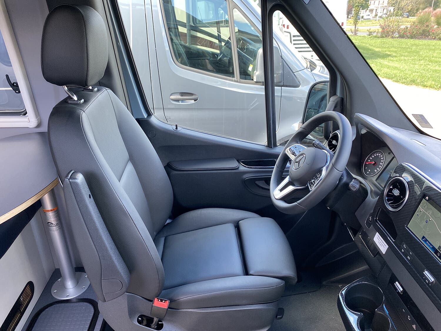 MBUX® touchscreen multimedia infotainment center w/navigation, Wi-Fi hotspot, intelligent voice control and rear camera • Cab seats armrests, adjustable lumbar support, adjustable headrest, and slide/swivel/recline • 3-point seat belts • Dual airbags • DISTRONIC PLUS® (adaptive cruise control) • Power steering w/tilt wheel • Power mirrors w/defrost and turn signals • Power door locks w/remote • Power windows • 12-volt powerpoints • Sunvisors • Folding privacy screens for cab door windows • Appliqué package • Keyless entry w/remote • Entry door assist handle w/Ram® Tough-Track™ mount • Rain sensor w/integrated wet wiper system • High beam assist • Active brake assist • Active lane keeping assist • Blind spot assist • Traffic sign assist • Dash charging station