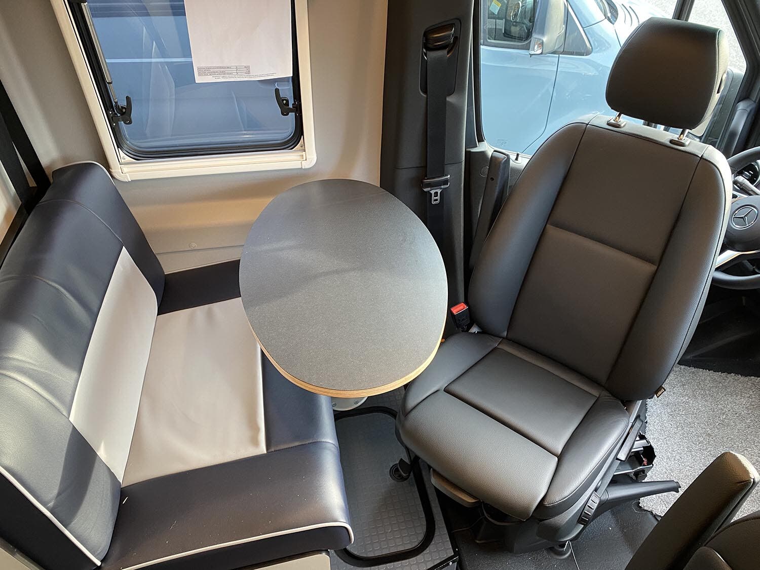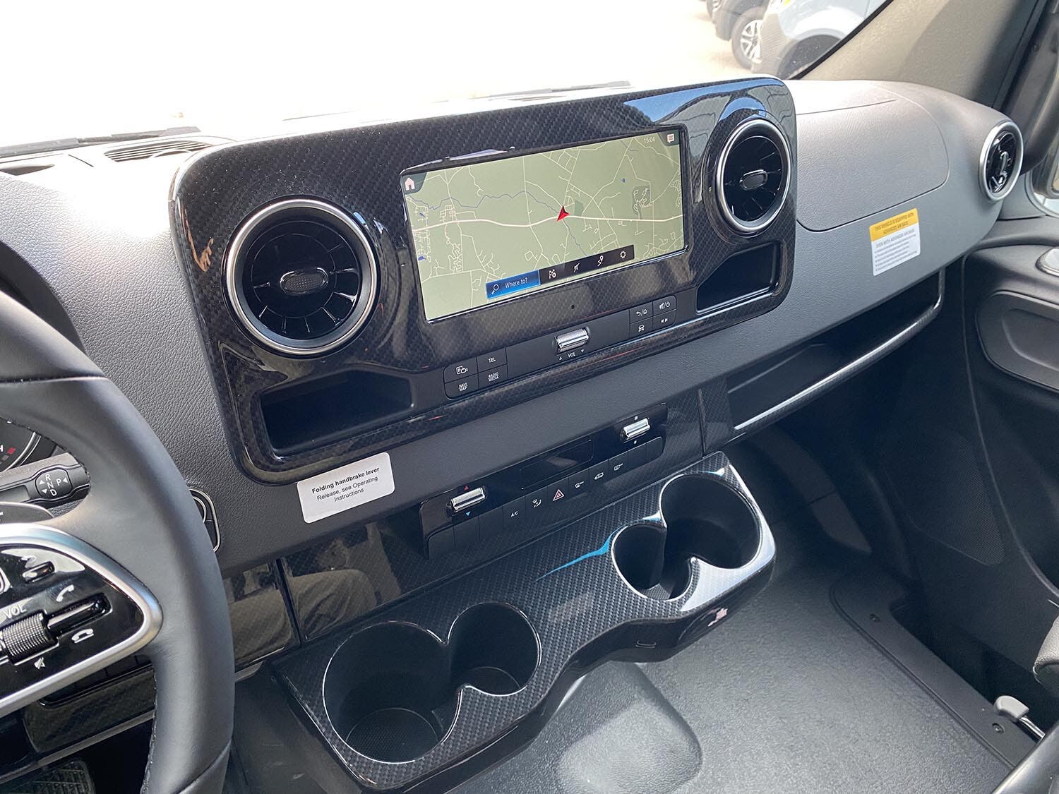 MBUX® touchscreen multimedia infotainment center w/navigation, Wi-Fi hotspot, intelligent voice control and rear camera • Cab seats armrests, adjustable lumbar support, adjustable headrest, and slide/swivel/recline • 3-point seat belts • Dual airbags • DISTRONIC PLUS® (adaptive cruise control) • Power steering w/tilt wheel • Power mirrors w/defrost and turn signals • Power door locks w/remote • Power windows • 12-volt powerpoints • Sunvisors • Folding privacy screens for cab door windows • Appliqué package • Keyless entry w/remote • Entry door assist handle w/Ram® Tough-Track™ mount • Rain sensor w/integrated wet wiper system • High beam assist • Active brake assist • Active lane keeping assist • Blind spot assist • Traffic sign assist • Dash charging station