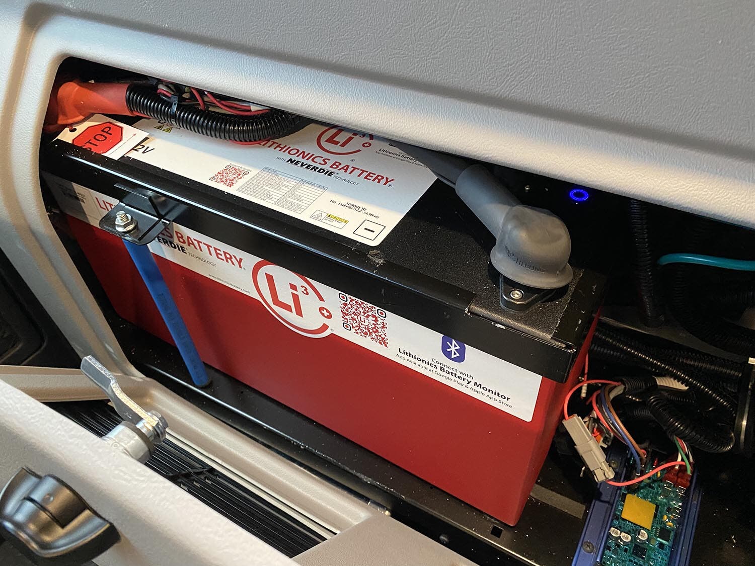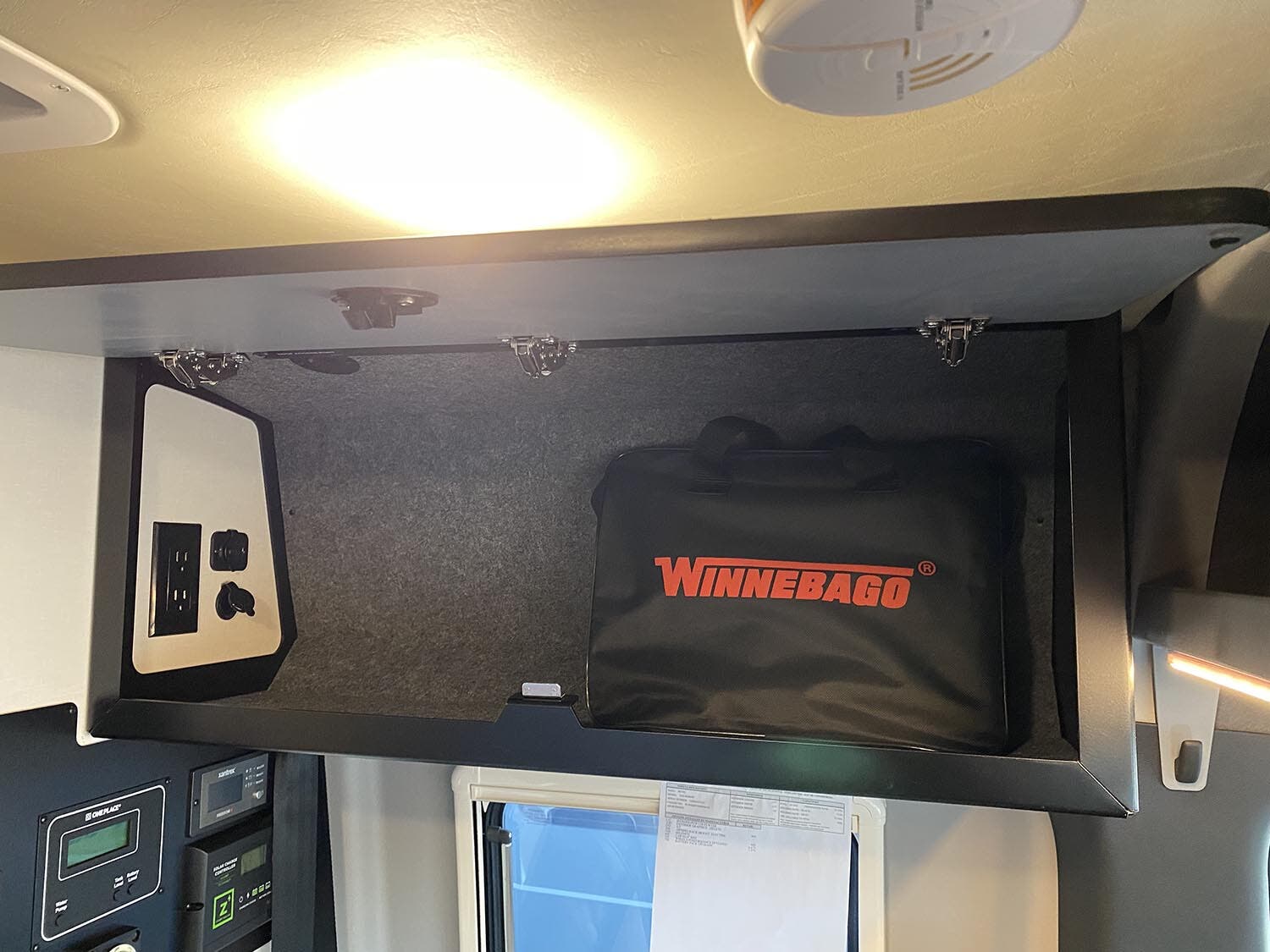 AC/DC load center/converter • (1) 320-amp-hour lithium-ion battery w/dedicated second alternator to charge system • Coach battery disconnect system • Dual-battery charge system • 30-amp. power cord • Solar panel/battery charger • 2,000-watt inverter/charger • Roof port wiring access