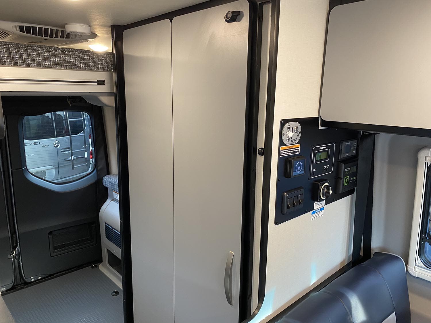 LED ceiling lights w/dimmer switch • Tinted dual-pane euro acrylic windows w/cassette shades • Deluxe powered ventilator fan w/rain cover • Systems monitor panel • USB charger points • RAM® Tough-Track™ mounts throughout • Heavy-duty vinyl flooring throughout