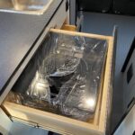 Removable counter extension • Laminate countertop • Portable single burner induction range top • 3.0 cu. ft. (12V) compressor driven refrigerator/freezer • Stainless steel sink w/single control faucet • Pantry • Removable, pedestal dinette table • Full-extension drawers