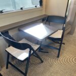 Dimmable LED ceiling lights • Blackout roller shades (lounge & dining) • Tinted coach windows • Winnebago Connect™ 10″ touchscreen w/available companion mobile app • Powered roof vent w/rain cover, electric lift, remote control, thermostat operation (front bunk/lounge) • Fold down dining table and chairs • Power reclining theater seating w/fold down center armest w/2 cupholders, USB charging outlets, and removable swive lap tables • Cabover bunk 49″ x 75″ (N/A w/ Low Profile Front Cap) • 32″ LED HDTV JBL Bluetooth® soundbar • Satellite system ready • Amplified digital TV antenna • Roof wiring access port • 120V, 12V, USB-A, USB-C charging ports throughout • Assist bar • Woven vinyl flooring throughout • Soft vinyl ceiling • Dimmable overhead accent LED lighting • Dimmable toe kick accent LED lighting