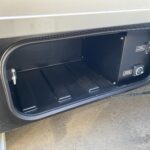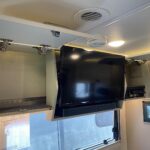 Automatic double entrance doorstep • LED porch light w/interior switch • Stepwell light w/interior switch • Heated gear garage w/L-track cargo tie down system, 110V/12V charging ports, and LED lighting • Front and rear mud flaps • Aluminum cab steps w/logoed tread and loop attachment • Powered patio awning w/LED lights and Bluetooth® control